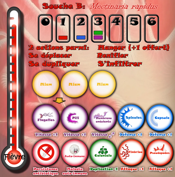 Mais revenons au principe même du jeu. Dans Super Microbe les joueurs interprètent des souches de microbes infectant un organisme. Leur but est de faire monter la fièvre et d'être le premier à avoir 5 jetons fièvre différents.